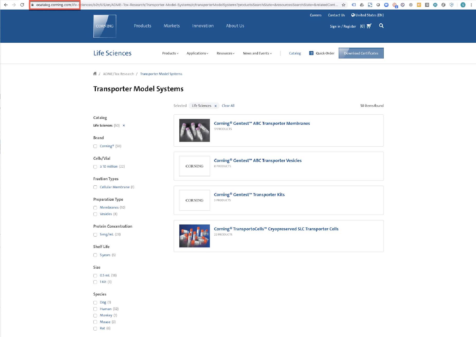 Corning Life Sciences’ eCommerce portal is built on SAP Hybris. It’s a separate website (subdomain) found at ecatalog.corning.com. Unfortunately, it is not the optimal web experience and it dilutes SEO ranking potential.