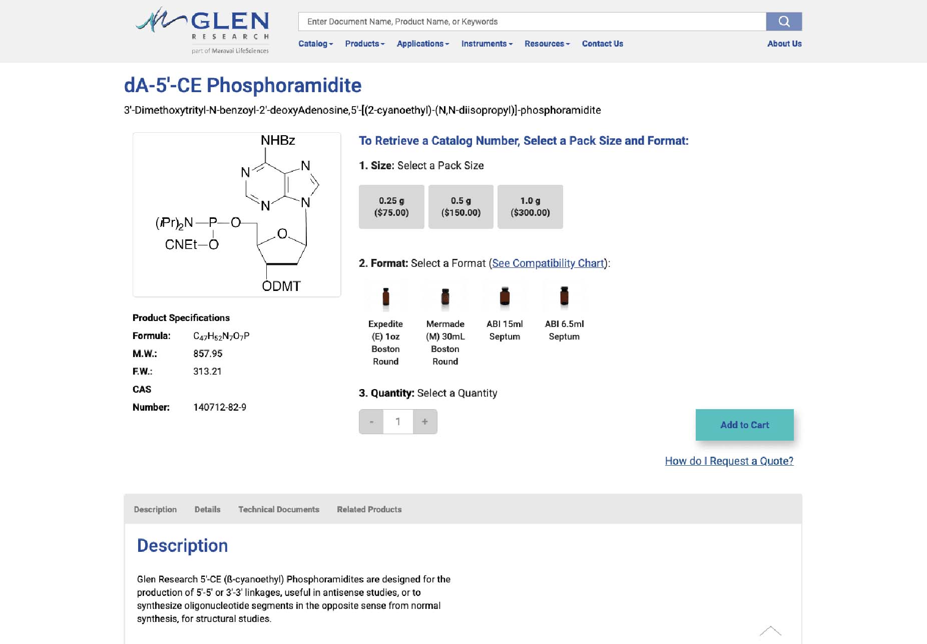 Glen Research is an example of a Magento 2 website that Supreme designed with a user-intuitive and highly-functional product detail page.