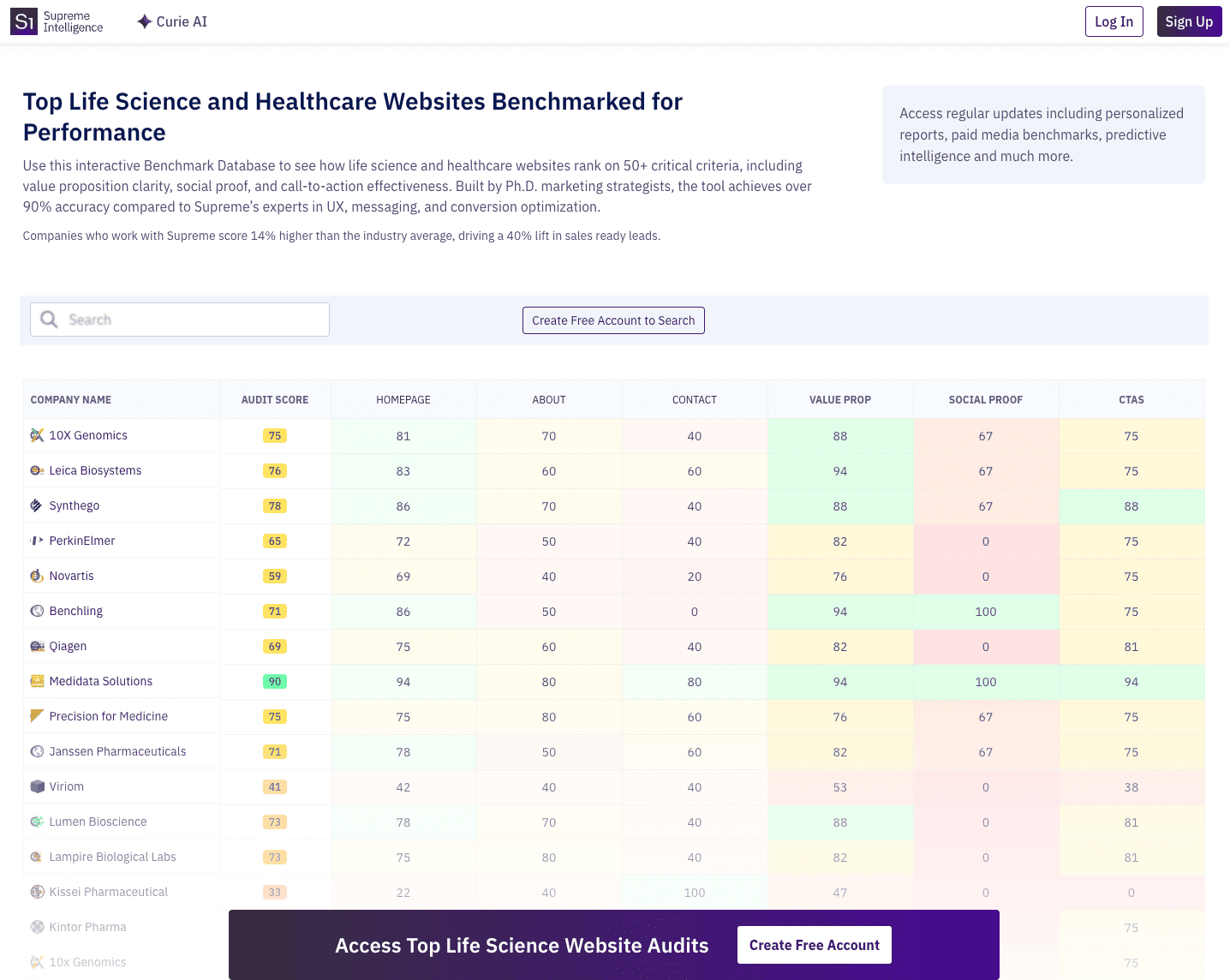 Check out Supreme Intelligence for a free audit and compare your website to thousands of other life science and healthcare websites across 50+ criteria.
